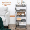 Discover the versatile Rootz service trolley – your perfect helper for small spaces! With 5 spacious shelves, it offers enough room for all your utensils. Move effortlessly with practical handles and smooth-running wheels, adapting to your needs as a kitchen, serving, or cleaning trolley.