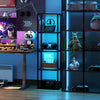 Transform your living space with The Rootz RGB Floor Lamp, featuring four levels of glass shelves and vibrant LED lighting. Instantly set the mood with customizable colors, remote control access, and music sync effects. Perfect for displaying collectibles and enhancing your home decor, this slim, modern black lamp saves space while delivering striking ambiance, making it an ideal addition to any contemporary room or entertainment area.
