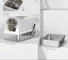 Discover an optimal solution with The Rootz Kackenklo, offering prime features for your feline's needs. This cat toilet comes with a convenient lid, string shower, and dual entrance design. A stainless steel tray ensures easy cleaning while resisting odors and scratches. With an innovative front entrance and top-output configuration, it minimizes litter mess, keeping your home cleaner and fresher. Perfect for cats up to 7 kg, it includes an odor neutralizer for enhanced freshness.