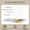 Shatterproof glass: Thick, multi-layered glass. Metal frame ensures stability