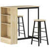 The Rootz 3-Part Bar Table Set with Storage, Footrests, Space-Saving Design in Brown+Black