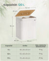 This Rootz Large White Bamboo Laundry Basket offers a stylish solution for managing laundry efficiently. Crafted with an eco-friendly bamboo exterior and a durable polyester cotton sack inside, it ensures maximum resilience and durability. Its elegant and neutral white finish complements any home decor, while the ample 50 x 40 x 61 cm size accommodates substantial laundry loads effortlessly.