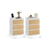 The Rootz Stylish Bedside Table Set with Drawer and Charging Station in White and Brown