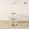 Step into a world of organized harmony with the Rootz clothes rack, designed for ultimate functionality and style. Its elegant trapezoidal shape enriches any room, providing a practical yet decorative fixture. With 8 double hooks and a versatile three-stage shelf, it's ideal for safely holding coats, scarves, and personal items. Constructed of sturdy steel, finished in White and Brown, this piece complements any décor seamlessly.