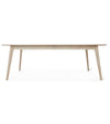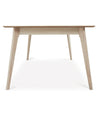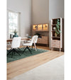 Introducing the dining table, a harmonious blend of style and practicality. Crafted from solid oak, veneer, and MDF, this table is not only durable but also adds a sophisticated touch to your dining area with its white oiled surface and natural wood-colored legs.