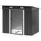 This sturdy Rootz equipment shed offers a perfect storage solution for your tools, equipment, and outdoor gear while enhancing your garden's aesthetics. Crafted from robust, galvanized steel, it features a pent roof that prevents water accumulation, ensuring durability. Ventilation grids allow for optimum air circulation, preventing mold. The convenient sliding door facilitates easy access. A comprehensive foundation kit is included for superior stability and protection.