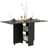 The Rootz Foldable Kitchen Table is an essential addition for your kitchen or dining room. Crafted from durable chipboard, it features a stylish black finish, two practical shelves for storage, and easy-to-move rollers. This versatile table folds away for space-saving convenience, making it perfect for small living areas or extra dining space during gatherings.