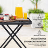 Enhance your outdoor spaces with the Rootz Garden Table, a stylish and foldable 70x70 cm table. The robust, weatherproof build features a chic Grey finish and grid-rattan-like steel surface, perfect for terraces and balconies. Its compact design allows for easy storage and transportation, making it versatile for picnics, camping, or as a chic bistro table. This durable table ensures long-lasting enjoyment in any outdoor setting.
