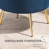 - Material: Velvet-like polyester, foam, metal, rubber wood
