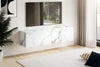 Elevate your living space with this elegant marble-look hanging TV base cabinet. Ideal for TVs up to 55 inches, with practical folding doors for storage.