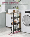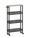 The Rootz rolling car features a stylish grey-black design, crafted from durable wooden chipboard and steel. With four spacious levels, it’s perfect for organizing and displaying your belongings. Easily move it around your space with the convenient handle, making it a versatile addition to your home or office.