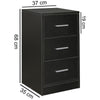 The sleek and minimalist design of our Modern Black Veneer Nightstand, featuring three spacious drawers, a convenient shelf, and stable rubber feet, providing ample storage space and easy organization for your essentials, making it an ideal companion for boxspring beds.