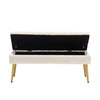 - Modern Minimalist Beige Velvet Storage Bench with Gold Metal Legs