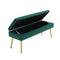 The Rootz Pouf Bench is a multifunctional piece of furniture that combines style with practicality. Covered in elegant velvet with gold metal feet, this bench offers a modern design with a spacious interior storage compartment for reducing clutter.
