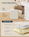 The Rootz Stool combines stylish design with practicality, featuring a spacious storage space of 43 liters. Crafted from durable MDF and upholstered with fleece, this white stool provides comfort with its 25d highly elastic foam, making it a chic yet functional addition to any room.