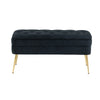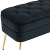 The Rootz Pouf Bench is a versatile piece of furniture crafted with high-quality velvet and gold metal feet. It features a spacious interior compartment, comfortable padded seat, and a modern design suitable for various spaces, from bedrooms to entryways.