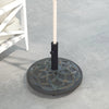 A unique way to keep garden parasol standing - this Rootz garden umbrella base. The top pattern and bronze tone finish is eye-catching. The metal structure, filled with concrete makes this garden umbrella stand a tough, weighted piece which holds your parasol in place. Complete with a tightening screw on the metal pole for extra security.