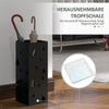 The Rootz umbrella stand offers an elegant solution for storing umbrellas, keeping your hallway dry and organized. Made from robust, galvanized steel, this stand is resistant to rust and provides a modern black finish. Its compact size holds two large umbrellas and includes four hooks for smaller ones. The included removable drip shell allows for easy drainage and cleaning, ensuring a clean and tidy entryway.