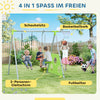 Transform your garden into a playground with the Rootz Outdoor Skelset! This robust 4-in-1 children's swing can accommodate 3-4 kids, featuring adjustable seats, a double swing, basketball hoop, and soccer goal. Made from durable, rustproof steel and PE materials, it ensures endless fun in any weather!