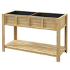 The Rootz Hochbet on legs is a stylish raised garden bed designed for effortless gardening. Made of durable solid fir wood, this raised planter ensures easy access while planting vegetables, herbs, or flowers. With features including a removable separator and a large shelf for stowing tools, it is ideal for urban gardening or small outdoor spaces.