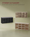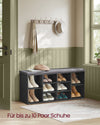 A multifunctional shoe rack in grey- black color made of chipboard, foam, and imitation linen cover. Organize your shoes effortlessly!