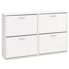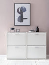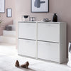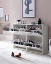 The modern and elegant design of The Rootz Shoe Cabinet adds a stylish touch to any home, offering ample storage space for shoes with its four folding doors and additional shelf for decorations or key baskets, while its anti-slip features ensure both the cabinet and floor are protected.