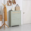 PLENTY OF STORAGE SPACE: This shoe cabinet has 2 folding drawers and 1 pull-out drawer. Each folding drawer has a two-level adjustable shelf to accommodate up to 12 pairs of different shoes. You can also store knick-knacks, photos or keys on the smooth top plate.