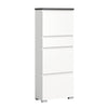 Modern and easy to care for, this high-quality shoe cabinet offers 1 drawer, 3 flaps, and a timeless design.