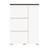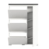 Shoe storage with system: 3 compartments, 1 door, 4 shelves for shoes, bags, and more.