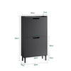 The Rootz Shoe Storage Cabinet is a versatile solution for all types of entrance areas. Its 6 kg top plate and 5 kg load capacity per flap offer ample storage space for shoes. The cabinet is made of durable MDF and metal, painted black, with dimensions of 50x90x19cm.