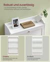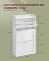 The Rootz shoe cabinet offers a sleek white finish and can store up to 18 pairs of shoes efficiently. Crafted from durable wooden chipboard, it features three flaps to easily access your footwear. With a max load capacity of 10 kg on the top, it becomes a versatile addition to your home decor.