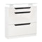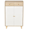 This shoe cabinet from Rootz impresses with its simple design and large interior. Four shelves offer space for up to twelve pairs of shoes. Keys, gloves and bracelets can be stored in two drawers. Plants, pictures or other decorations can be placed on the upper shelf. Whether in the dressing room, hallway or living room - this shoe cabinet from Rootz is the ideal storage place for your shoes.