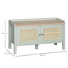 This beautiful shoe bench with rattan wicker fronts in a vintage design is the ideal storage furniture for your shoes and other things. Conveniently, you can also sit on the top of the furniture to easily put on and take off your shoes. Whether in the entrance area, in the living room, in the bedroom or in the office, the contemporary color and the trendy cane weave of this sideboard provide that certain something.
