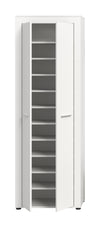 Organize your footwear elegantly with The Rootz White Shoe Cabinet. This spacious cabinet boasts two doors, ten removable and adjustable shelves, and can accommodate approximately 26 pairs of shoes. Perfect for a stylish entrance or hallway, it combines functionality with a sleek design. Crafted from durable chipboard, its modern white finish complements any décor, enhancing the aesthetic of your living space while keeping it clutter-free.