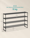 The Rootz 4-Level Shoe Shelf is perfect for organizing 25-30 pairs of shoes. Made from sturdy metal pipes and plastic connectors, this shelf offers excellent stability and durability. With its sleek black design, it fits seamlessly into any home decor while providing functional shoe storage.