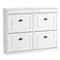 This highly practical shoe bench from The Rootz line boasts a sturdy construction with a comfortable cushion for easy seating. Its compact design, measuring 104 x 51 x 24 cm, fits perfectly in narrow spaces. The shoe bench features two spacious flaps for storing up to 8 pairs of shoes, and an integrated drawer for additional storage needs, making it ideal for busy households and small apartments.
