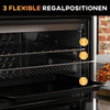 The elegant design of this mini oven in black with chrome and angular shape combines nostalgic charm with modern functionality. Easily adjust the temperature between 40-220℃. The small oven offers six presets for fish, cookies, bread, cake, pizza, and dehydrating, while the air frying mode is ideal for bacon, chicken, wings, steak, fries, and pancakes.