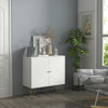 This beautiful white sideboard with gold metal table legs will add a chic and elegant atmosphere to your interior space, be it in the living room, kitchen, etc. Featuring a double cabinet with adjustable shelves, it offers plenty of storage space for dishes, small kitchen appliances, and more.