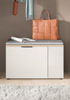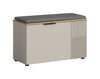This stylish bench, crafted from premium Brown, Grey, offers remarkable comfort and utility. Measuring 80x48x36 cm, it accommodates ample seating and storage with two doors and four spacious compartments. The bench's modern design is accentuated by its milled edges, with a durable capacity of up to 90 kg. A matching gray seat cushion adds a touch of elegance.