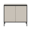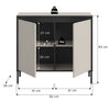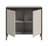 The cashmere-effect chest of drawers, measuring 92 x 83 x 38 cm, presents a chic and modern design. Built with high-quality, easy-care surfaces and a striking black shadow gap, it hosts two adjustable shelves and four compartments behind two doors. It provides an abundance of storage, ensuring organization of your belongings while enhancing the aesthetic appeal of any room.
