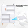 Display your books and decor with this trendy white sideboard from Rootz. The chipboard and solid pine wood construction provides stability and safety. Perfect for organizing items with 4 open and 4 closed compartments, including cabinets. Wall-mounting tabs for added stability.