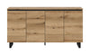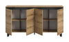 The spacious sideboard in Brown and Black offers an impressive storage solution with its dimensions of 160 x 84 x 36 cm. Featuring four doors, four height-adjustable shelves, and eight compartments, it accommodates all your home essentials effortlessly. The high-quality surfaces boast easy-care features, while the stylish black shadow gap adds a touch of modern elegance, making it perfect for any room.