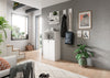 This compact white high-gloss wardrobe combination is ideal for space-efficient entryways. It features stylish storage and versatile options with its two panels and shoe cabinet, offering a sleek and functional design. Easily installed and maintained, it adds elegance and functionality to any modern home while maximizing smaller spaces.