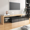 Enhance your living room with our stylish TV cabinet in high-gloss black and wood look, offering both elegance and practical storage space. The integrated glass shelves and seven-color LED lighting create an atmospheric ambiance. With durable construction and quality workmanship, this cabinet is a lasting addition to your home.