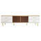 Modern marble effect TV cabinet with elegant gold-plated handles and sturdy feet. The combination of brown tempered glass and textured drawers will add a touch of luxury to your living room. With four spacious drawers and two compartments, this cabinet offers plenty of storage space for your personal belongings.