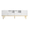 Elegant design: The marble-look TV cabinet combines brown tempered glass with a marble pattern and gold-plated handles, giving it a luxurious and modern look.