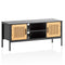 Optimized Storage SolutionsThis TV cabinet is not just about looks; it offers ample storage with two door compartments and two open storage areas, each with cable management solutions to keep your space tidy and organized.