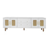 Elegant TV furniture in retro style with gold-plated handles and plenty of storage space. The dimensions of 175 x 38 x 55.5 cm offer enough space for your entertainment system and more. The four PVC rattan doors and stylish drawers with push-to-open function give the piece of furniture a special touch and provide generous storage space.