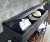 - Seat and storage compartment: solid mango wood, black lacquered