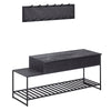 Introducing our Modern Industrial Wardrobe Set - a sleek and practical solution for your entryway. This handcrafted set features a wall coat rack with 13 hooks, a generous shoe shelf, and a sturdy black frame. With solid mango wood seat and storage, along with a powder-coated iron frame, this set offers durability and style.